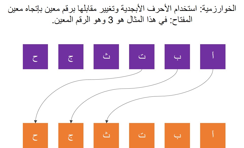 3. رسائل قيصر إلى قواده كانت تشفر لكي لا يضطلع عليها الأعداء. فقد ابتكر طريقة بسيطة للتشفير أو "خوارزمية" Algorithm. فالخوارزمية كانت استخدام الأحرف الأبجدية اللاتينية و"تغيير" الأحرف المقارنة بمقدار 3 أحرف والرقم "3" يسمى بالمفتاح.