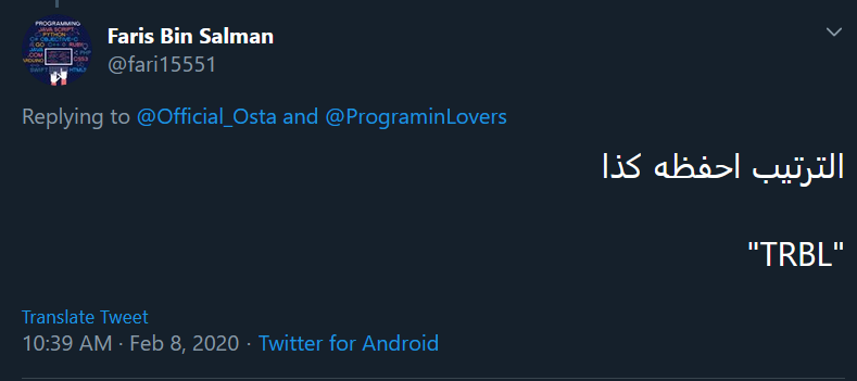 وهي إنك تحفظ الترتيب "TRBL"
