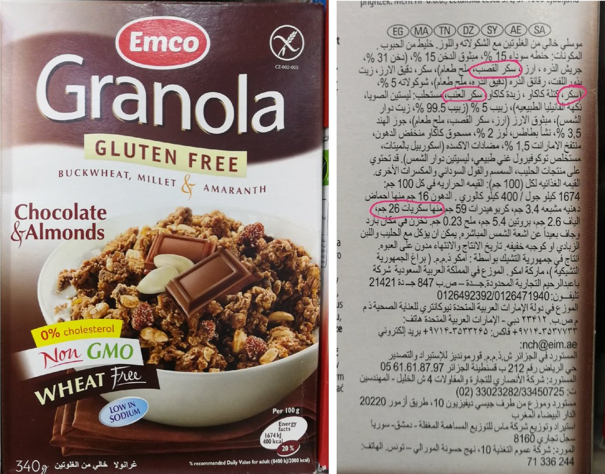 حتى أنواع حبوب الإفطار التي قد نعتبرها صحية وجيدة كونها تحتوي على مكسرات وقطع فواكه..
