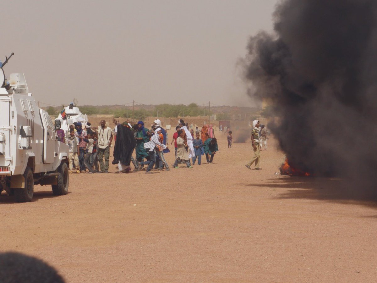 انتهى اليوم بسيطرة الشعب على الساحة وإطلاق جيش ومليشيات مالي من خلف قوات الامم المتحدة النار الحي ضد المحتجين وهو ما جعل تلك الليلة تعيش #كيدال على الزناد رغبة في الانتقام