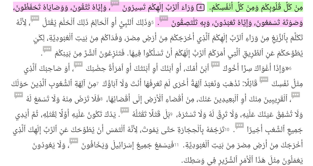 وبناء على التثنية ١٣ كمان لا يوجد مبرر حقيقي في الامتناع عن تصديق واتباع نبي زي النبي محمد جاء بالأمر بعبادة الله وحده الإله الحقيقي رب إبراهيم واسماعيل واسحاق وبني إسرائيل، لأنه لو عمل معجزة ودعانا لعبادة الله نخاف من أي امتحان هنا؟ هو دعاك لعبادة آلهة غير معروفة؟ 🤔
