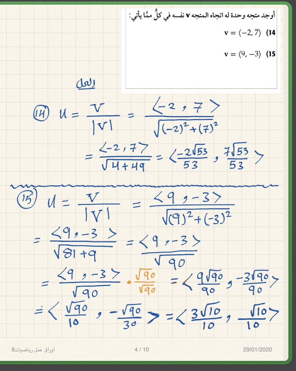 استكمال حل ورقة العمل الرابعة #رياضيات6