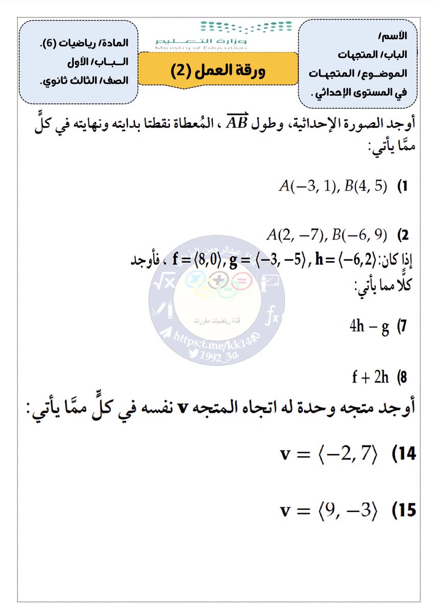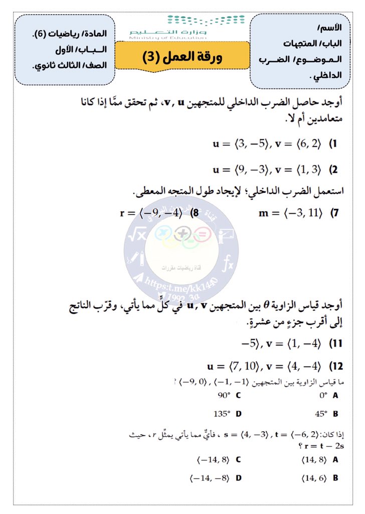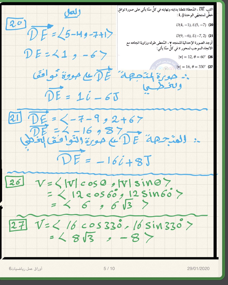 استكمال حل ورقة العمل الخامسة #رياضيات6
