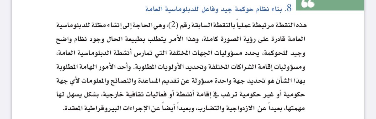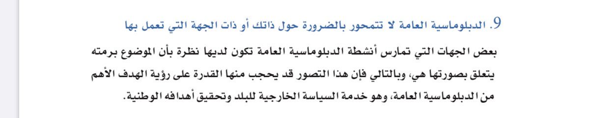 وحتى لا تتعرض أنشطة #الدبلوماسية_العامة للهجوم والانتقادات التي تشكك في جديتها وأهدافها ومصداقيتها، فهي بحاجة إلى: 👇