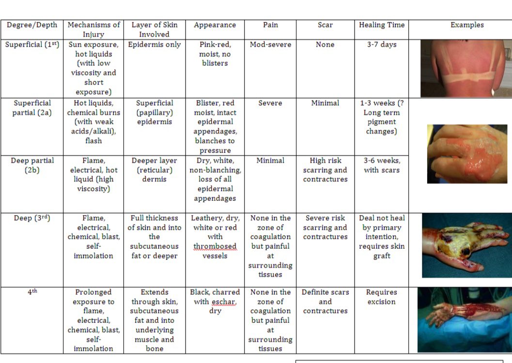 مابعد الحرق وش يصير ؟ طبعا الم ، فقد الاحساس بالمنطقه المصابه ، تورم ، ممكن تلف بالعضلات والانسجه الداخليه الاخرى ، (الندبات) < اكثر شي ممكن تجي مشاكل بالدم فقدان الدم او بكتيريا او ..مشاكل بالرئتين بسبب استنشاق الدخان الخ واعراض كثير، مثل مانعرف الجلد خط الدفاع الاول!