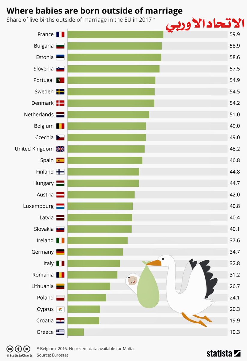 ففي #فرنسا بلغت نسبة أبناء الحرام عام 2016 حدود 60% من المواليد !!