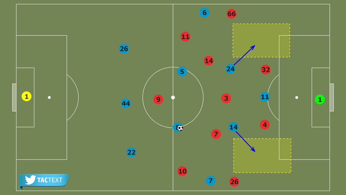 اعتماد "سيميوني" على 2-4-4 يقطع نصف الطريق إذا ما أراد الاعتماد على بعض الأفكار التي اعتمد عليها "أنشيلوتي" في مواجهته السابقة أمام "كلوب"، خصوصاً تلك المتعلقة بالضغط المنخفض والمتوسط وكذكل إغلاق العمق
