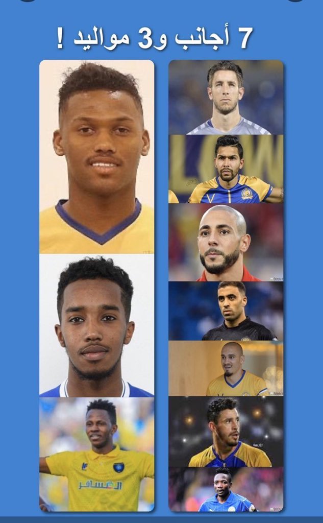 النادي الوحيد #النصر ٣ مواليد وبقية الانديه ١ فقط و٧ اجانب الاجمالي ١٠ اجانب