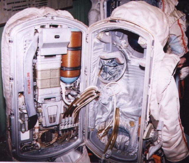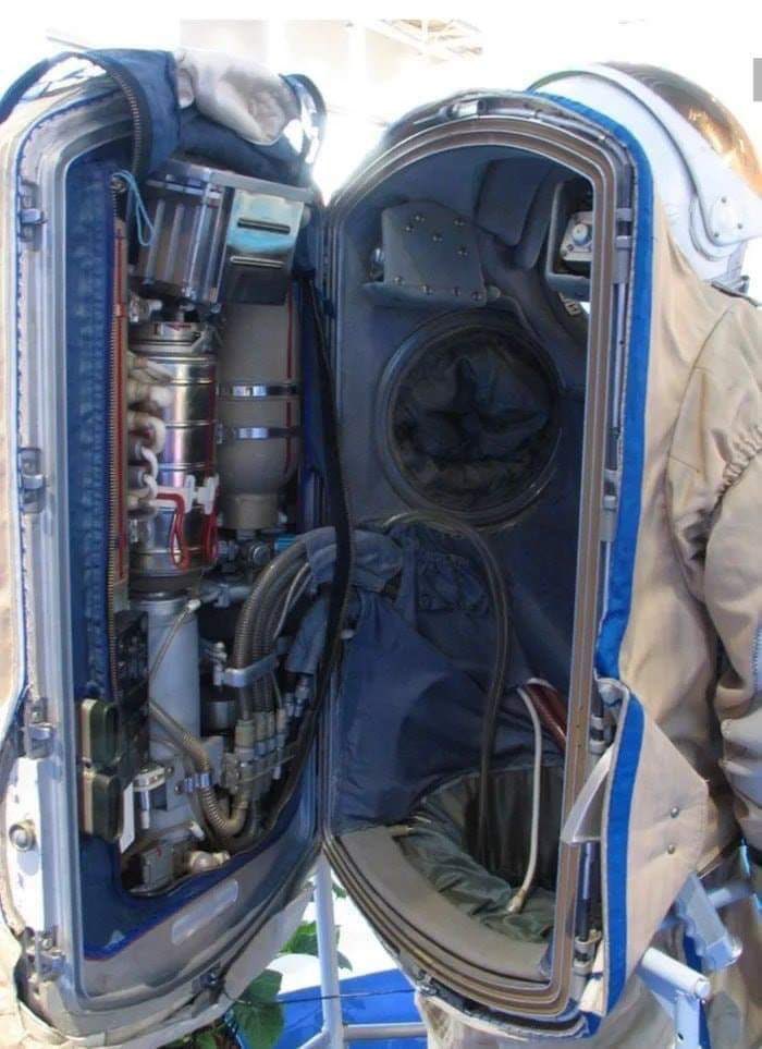 وتزيل ثاني أكسيد الكربون، وتمد البدلة بالطاقة (الكهرباء) والمروحة التي تحرك دورة الأكسجين في البدلة، وخزان ماء لحمل الماء الذي يتدفق في مواسير نظام التبريد في البدلة، ونظام التهوية، ونظام تنقية الهواء.