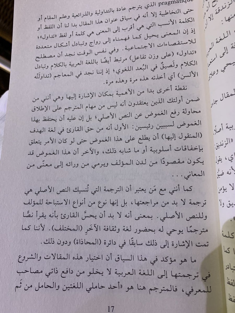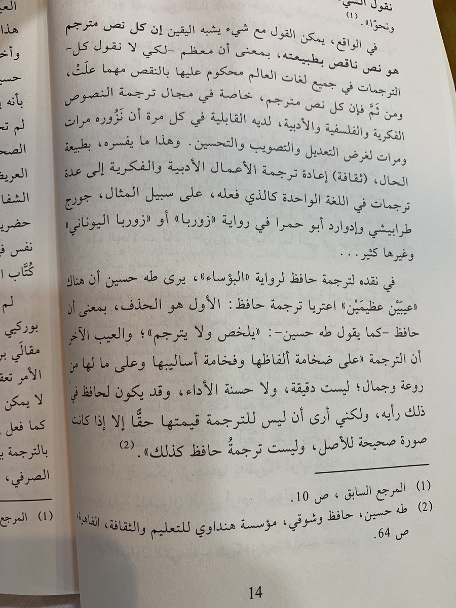 يرى الخطيب أن المترجم ليس مسؤولا عن رفع غموض النص الأصلي لأنه من حق القارئ ولانه من صنع الكاتب والترجمة التي تنسيك الأصل يراها استباحة فتذكرت مترجمنا الفذ @AbdulrahmanTR وكيف أن ترجماته تحلق بنا في أفق آخر استباحه عبدالرحمن ?