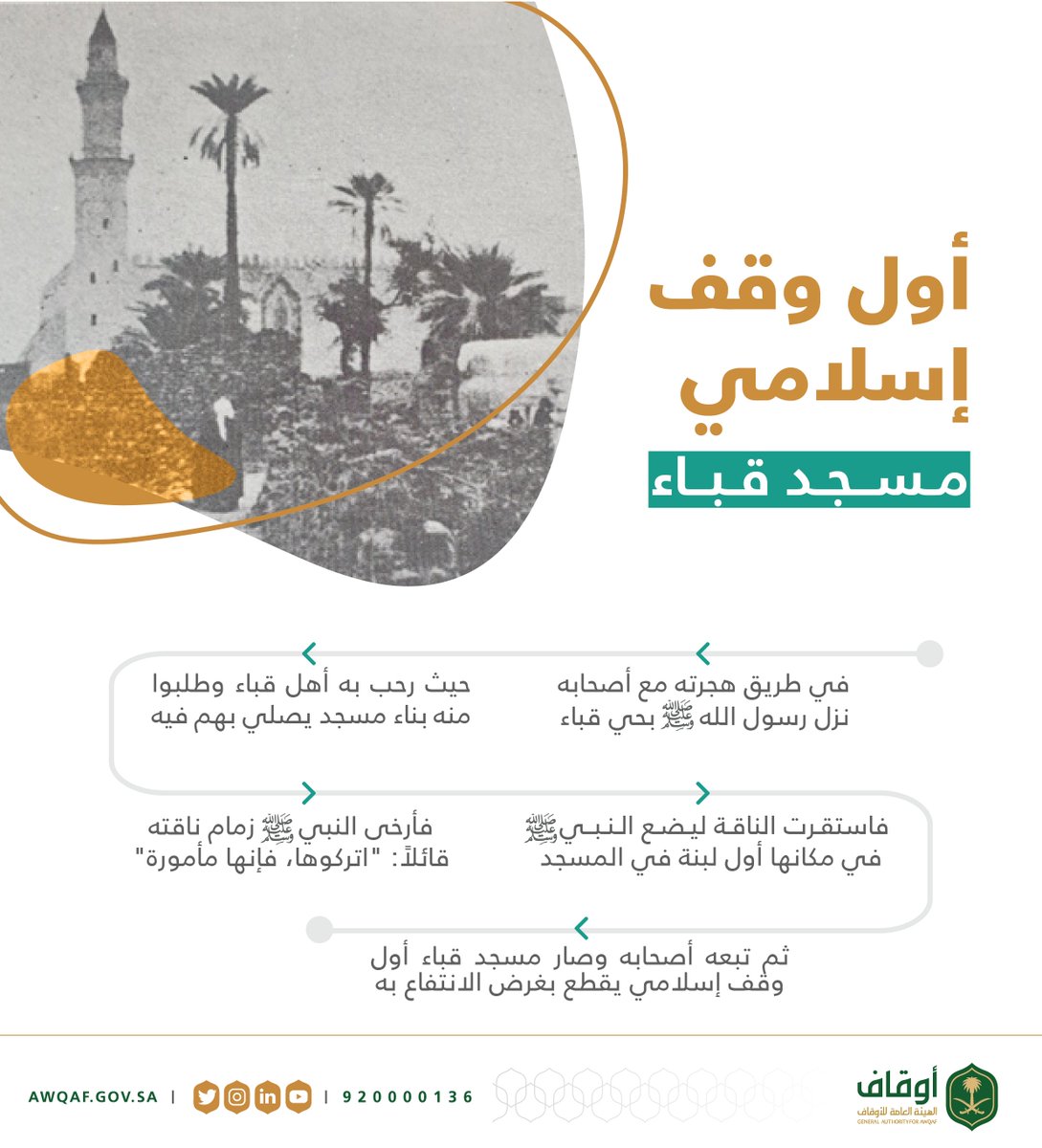 يُعتبر مسجد قباء أول وقف إسلامي، بناه النبي ﷺ بغرض الانتفاع المباشر به ..