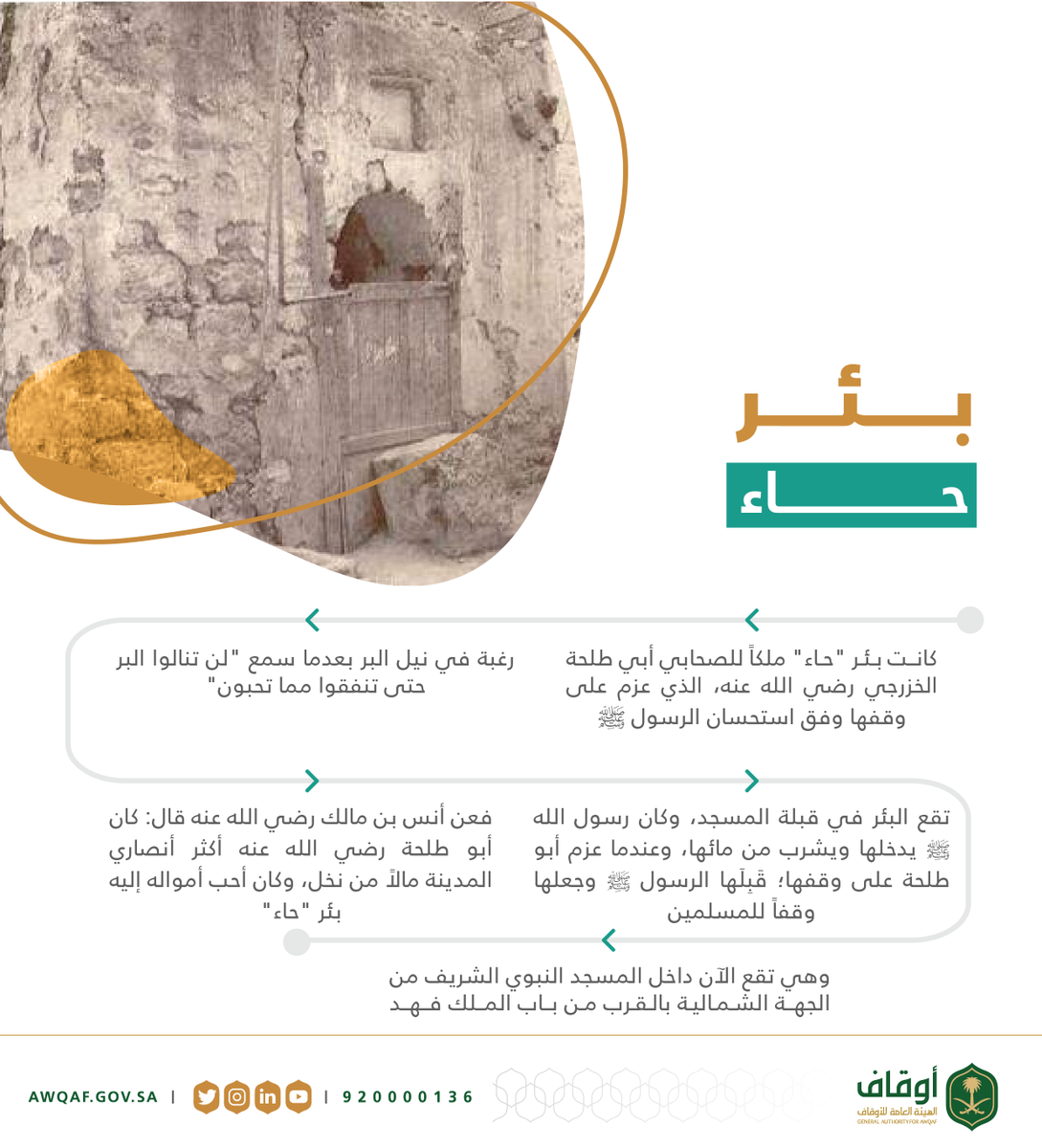 بالقرب من باب الملك فهد بالحرم النبوي الشريف، توجد بئر "حاء" إحدى #أوقاف_المدينة_التاريخية التي كان يستعذب الرسول ﷺ ماءها.. فما هي قصتها؟