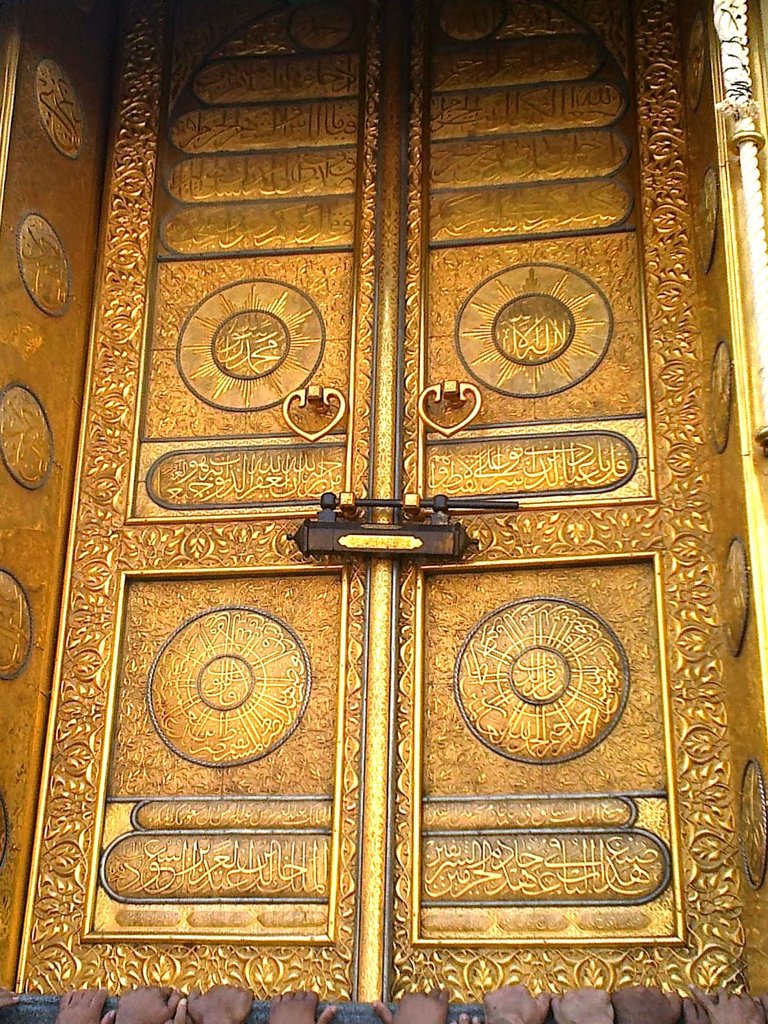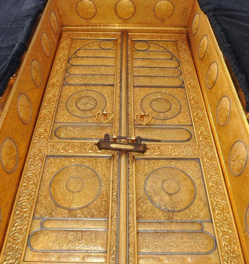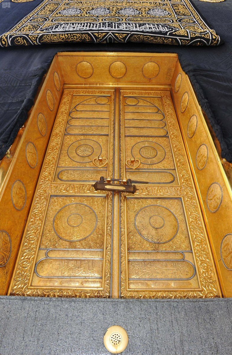 1- البابان: يسمى أحدهما باب #الكعبة والآخر باب #التوبة ؛ وقد أكمل باب الكعبة المشرفة الحالي 42 عاماً وهو في موقعه، منذ تركيبه عام 1399هـ بأمر من #الملك الراحل #خالد_بن_عبدالعزيز رحمة الله. واستغرق تنفيذ الباب عامين على يد #الصائغ أحمد إبراهيم بدر ب #مكة_المكرمة .