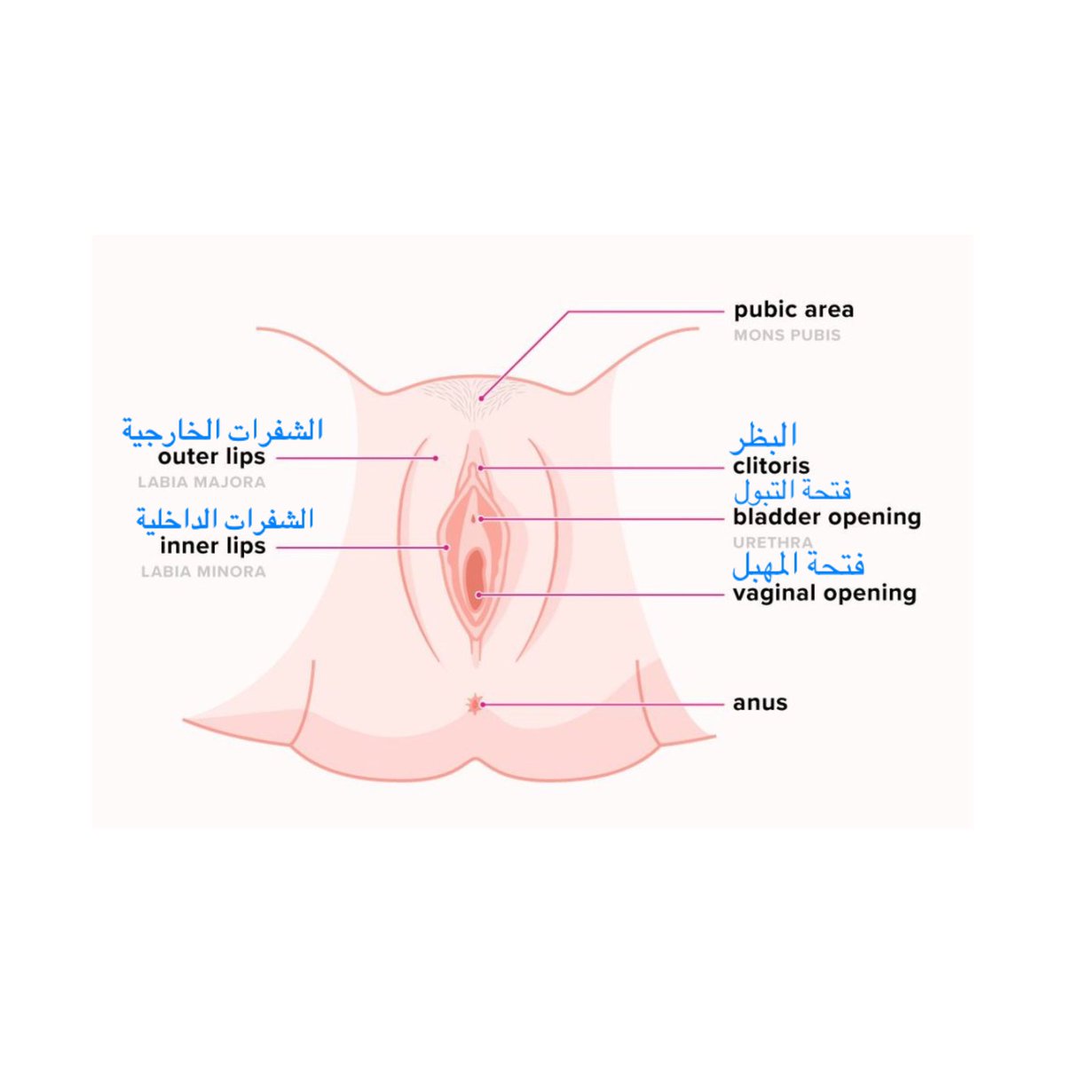 الاحليل ( #فتحة_التبول ) وهي فتحة صغيرة جداً تقع بين البظر والمهبل، يخرج منها البول.