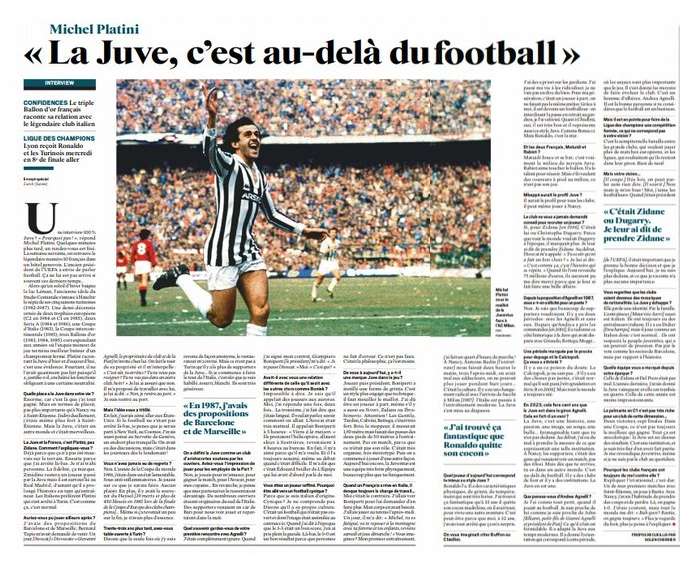 بلاتيني: لا. أعرف أن الكثير من المشجعين يرغبون في ذلك. كانت هناك فترتان: مع وبدون أسرة أنييلي. منذ أن تولى أندريا القيادة [2010]، أعاد هذا الجانب التاريخي إلى يوفنتوس الذي اختفى مع جيراودو، بيتيجا، مودجي ...