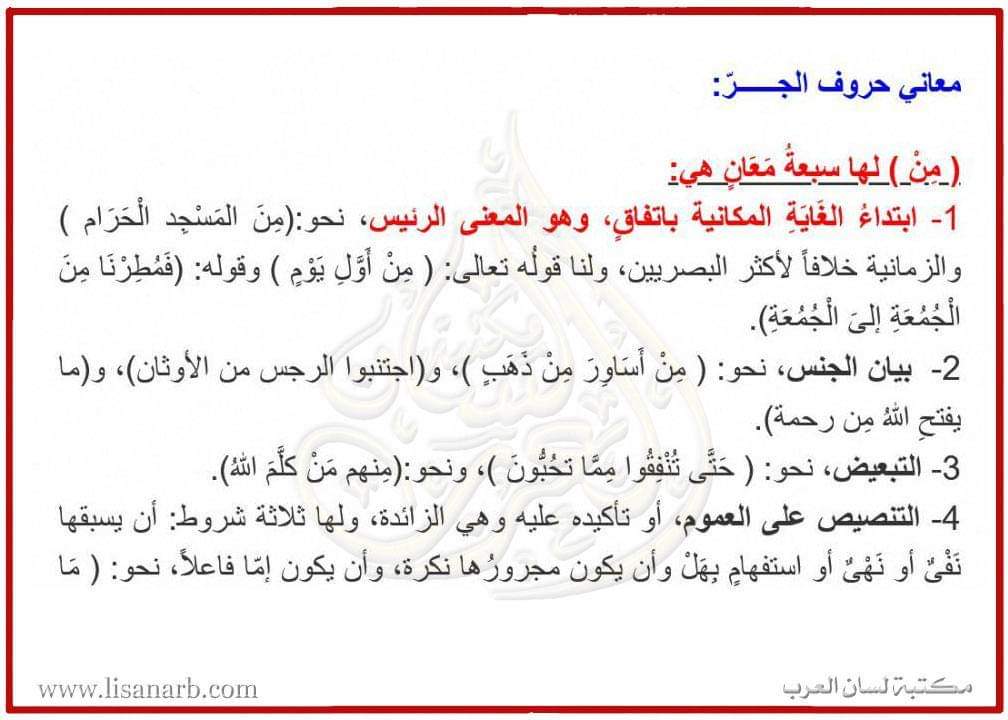 معاني حروف الجر..