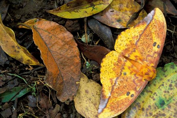 توجد عثة صفراء تبدو كأنها ورقة صفراء ساقطة
