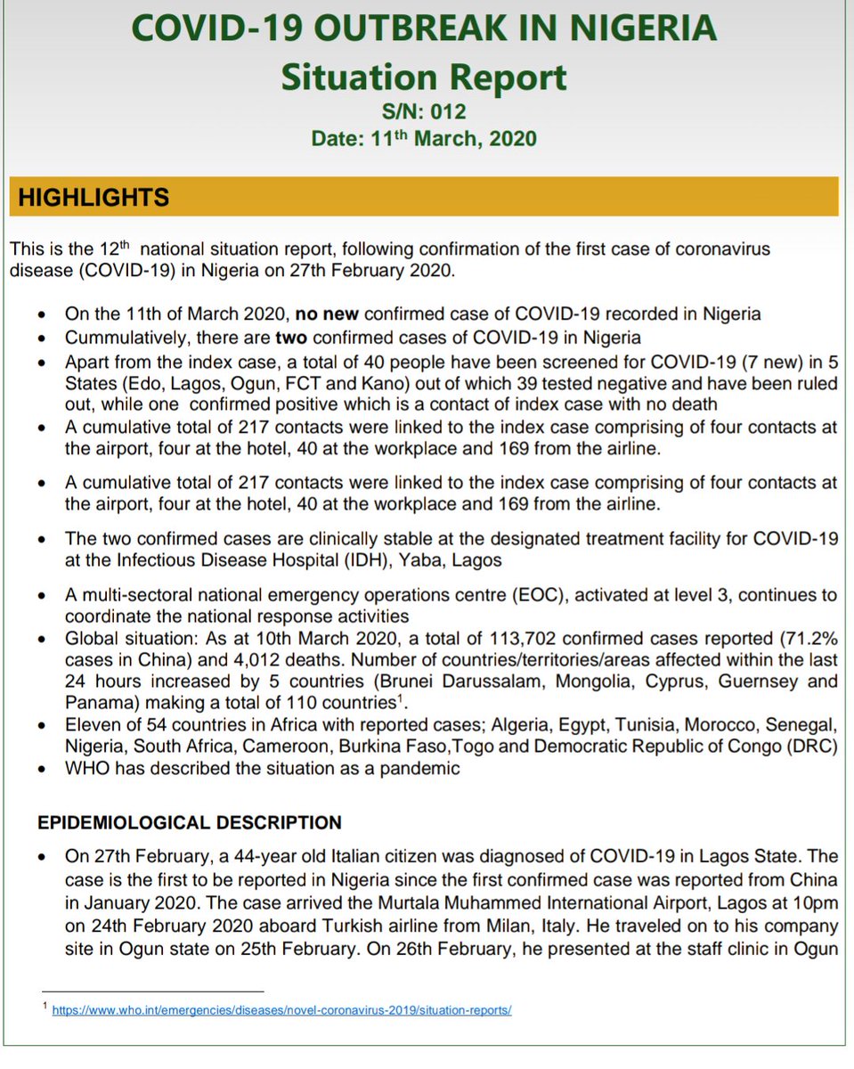 من 23 حالة يشتبه فيها #COVID19 تم الإبلاغ عنها حتى الآن في نيجيريا، 22 منهم كانوا سلبيين وفقط واحد إيجابي كما في 7 مارس 2020.👆