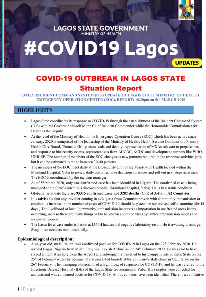 تقرير عن حالة #COVID19 في ولاية لاغوس الخامس من مارس 2020.
