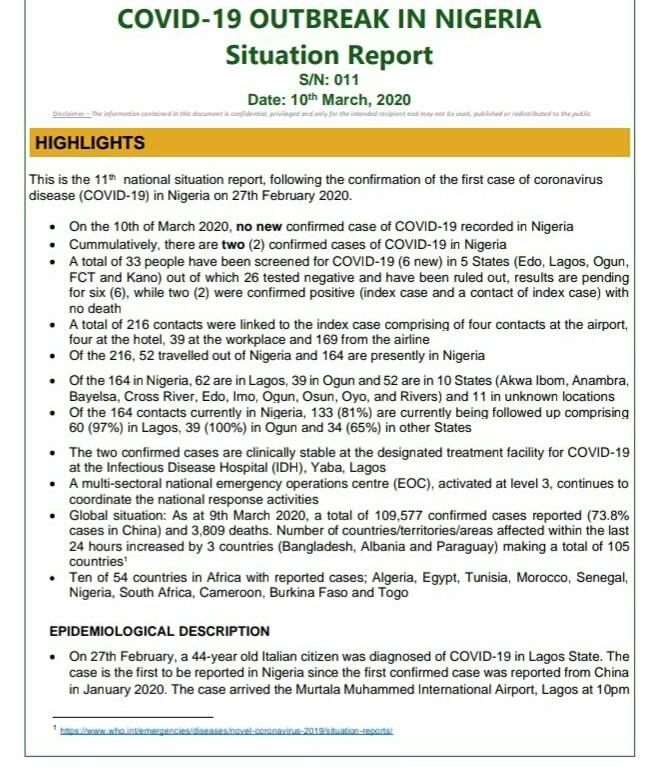 التقرير الوطني الثاني عن #فيروس_كرونا في نيجيريا.
