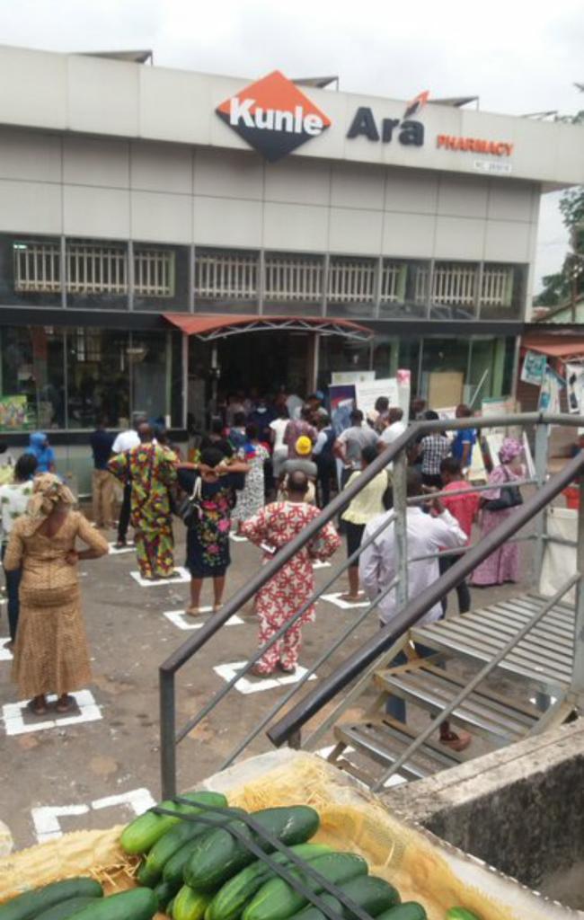 هكذا تم التنظيم في الدخول إلى الأسواق.. في نيجيريا، إبادان، الحفاظ على مسافة، لا يوجد ازدحام فضلاً أن يكون هناك تدافع يؤذي الغير.
