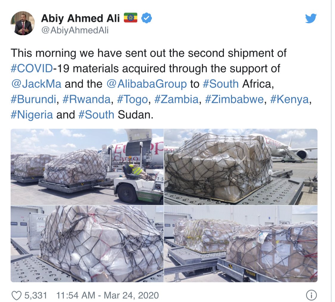 10- مؤسسة أليكو طانغوتي أنشأت تحالف يسمى ( التحالف ضد #COVIDー19 )، وتقوم بتركيب ما مجموعه خمس خيام طبية مجهزة بسعة 1000 سرير في لاغوس، لتكون بمثابة مرافق اختبار وعزل ومعالجة #فيروس_كورونا .