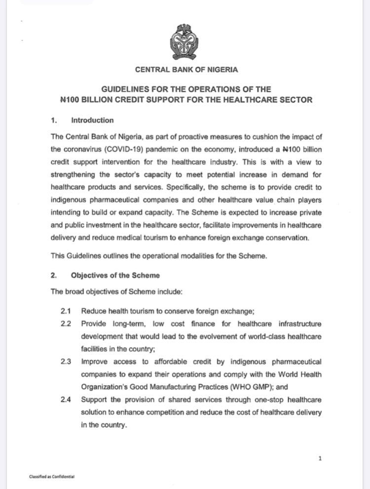المبادئ التوجيهية لتشغيل دعم الائتمان لقطاع الرعاية الصحية لتخفيف آثار جائحة #COVID19 على الاقتصاد.