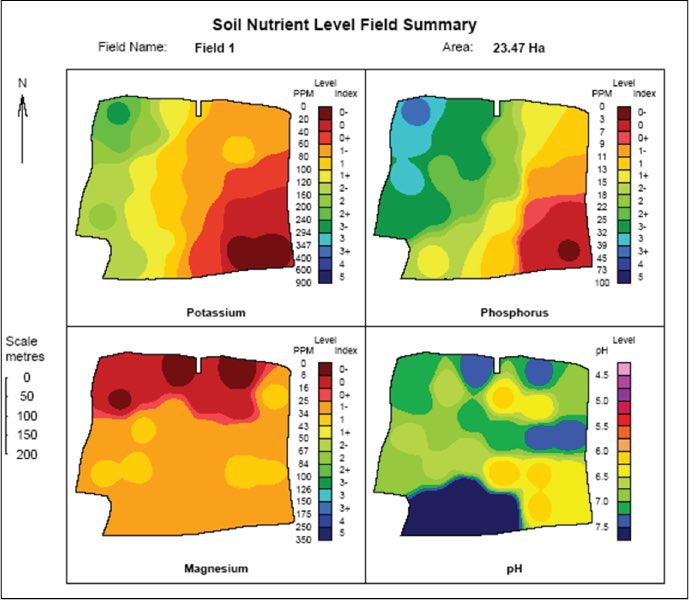 في حتة معينة، استخدام تكنولوجيا حديثة والات زراعية حديثة تساعدك في تخصيب الارض اوتوماتيكياً فقط عن طريق ارفاق الخرائط لها وتطبيق كميات سماد مناسبة.