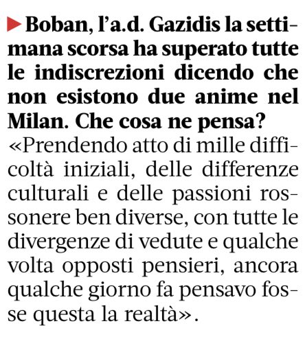صحيفة الـ @Gazzetta_it أجرت مُقابلة مطولة مع المُدير التنفيذي لكرة القدم في ميلان زفونيمير بوبان ، وأوضح فيها العديد من الأمور، وعند هذه النقطة نؤكد لكم بأن النص المُترجم للمُقابلة سيكون نقلاً من الصحيفة وليس من مصدر أخر حتى لا ننقل لكم تفسيرات أخرى كما يفعل بعض الإعلام والصُحف.
