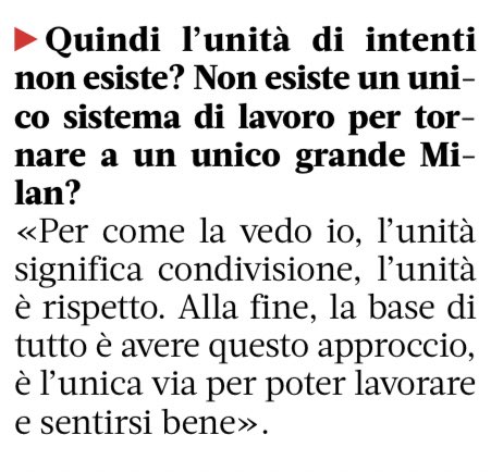 أسوأ ما في الأمر هو أن الحدث المزعزع للإستقرار يحدث في وقت ينمو فيه الفريق ونرى فيه عمل بيولي الكبير ، في الوقت الذي يُرى فيه أنه يتم تشكيل مسار أفضل بكثير ، عدم إبلاغنا كان غير مُحترم وليس بأمر أنيق ، إنها ليست من ميلان ، على الأقل ما نتذكره حول ميلان].