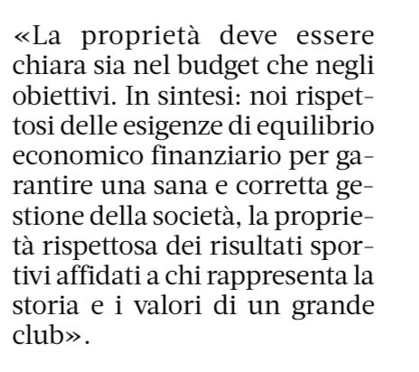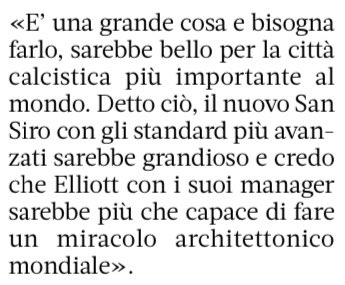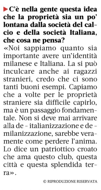 نحن نتفهم أنه يصعب أحياناً على المالك الأجنبي فِهم ذلك ، ولكنها خطوة أساسية ، لا يجب أبداً التخلّص من اللغة الإيطالية والميلانية ، بل سيكون حقاً بمثابة فقدان روح شخص ، أنا أحب هذا النادي وهذه المدينة وهذه الأرض الجميلة ..