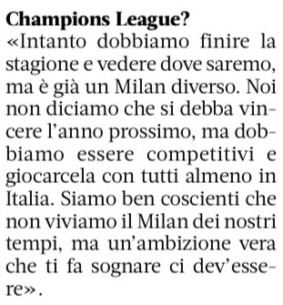 نحن نُدرك جيداً بأننا في ميلان نعيش عصرنا ، ولكن يجب أن يكون هُنالك طموح حقيقي يجعلك تحلم.