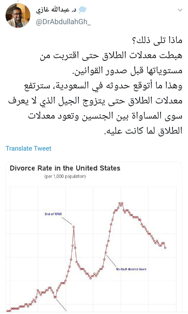 ختاما؛ الموظفة التي اقتربت خطوة لمساواة الرجل ارتفعت نسبة طلاقها خمسة أضعاف رغم أن الرجل ما زال يدفع المهر وتكاليف الزواج والنفقة؟ أتساءل هل يحتاجون إلى مزيد مساواة فيلغون المهر كما يريد المساواتي؟