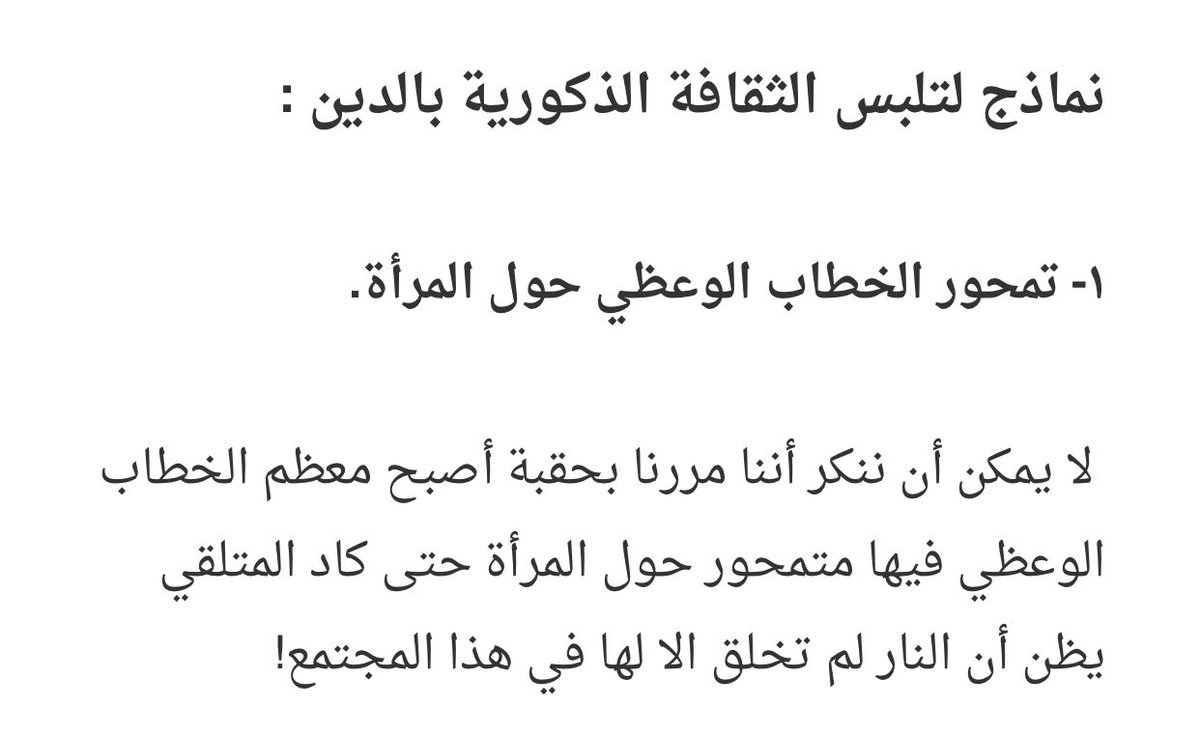 لا طبعا، هذا خطاب ذكوري، لا بد من مهاجمته، أين المساواة في الوعظ؟