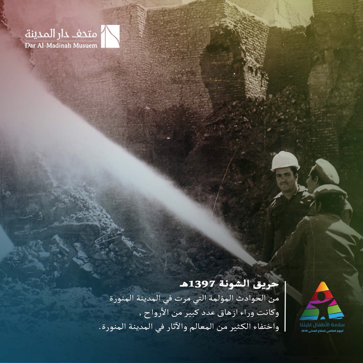 في #اليوم_العالمي_للدفاع_المدني_2020 ولأن #السلامة_أولا لعلنا نستذكر تفاصيل ما شهدته #المدينه_المنوره من حادثة مفجعة تاريخيا اهتزت لها أركانها وكان للدفاع المدني دور كبير في احتواءها .