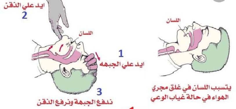 عند اخراج اللسان يفضل ان لا تكون بأصابعك لأن فك المريض حينها يكون متشنج وقد يستيقظ ليعضها لا إراديا