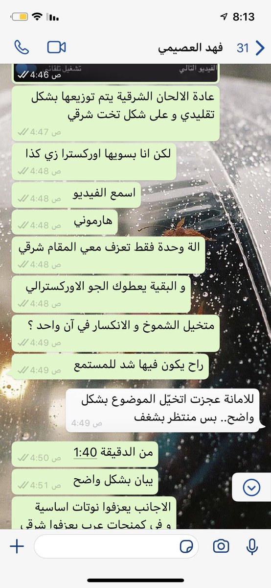 المرحلة التالية كانت إختيار الموزع المناسب و القادر على صناعة الفكرة و الرؤية الموسيقية اللي انا متخيلها للعمل و هي بأن تكون بتوريع اوركسترالي على الرغم من أن اللحن شرقي بحت من مقام #البيات و هنا كان التحدي و إصراري على تنفيذها بالشكل اللي انا متخيله ..