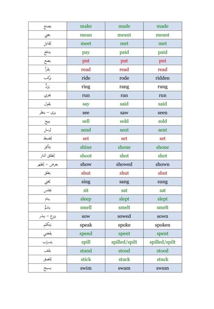 - معرفة الأفعال الشاذة أو الغير منتظمة: