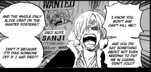 رغم عدم استمرار القتال لفترة طويلة، إلا أن سانجي استطاع القتال بندية ضد نائب الأدمرال السابق فيرقو (والذي تفوق على نائب الادمرال الحالي سموكر)