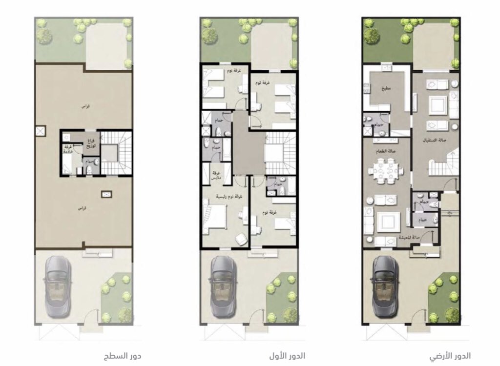 وبعدها، لقت مشروع فيه أهم معالم جودة الحياة "مساجد، مجمع مدارس، أسواق تجارية، حدائق" وهذا دفعها لتحقيق الشرط الثاني والبحث عن مساحة بيت يغطي احتياج اسرتها "4 غرف، صالة، مجلس، ملاحق، حديقة، مدخل سيارة"