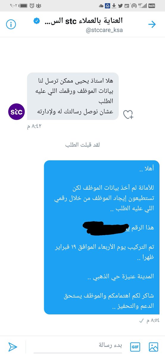 شكرا @stccare_ksa والموظف كفو ويستاهل وبالسهولة تستطيعون الوصول إليه من خلال المعلومات التي زودتكم بها ?