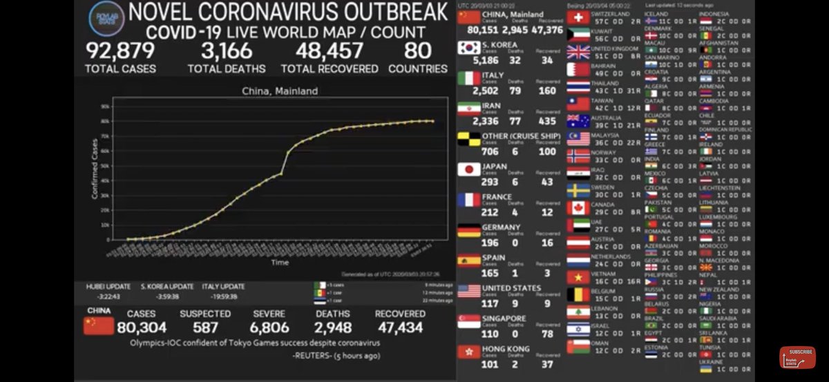 الصورة هي اخر احصائية حتى الان .. عدد تقريبا ٩٣ الف .. عدد الوفيات ٣٠٠٠ تقريبًا وعدد اللي تعافوا منه ٤٨٥٠٠ تقريبًا ..