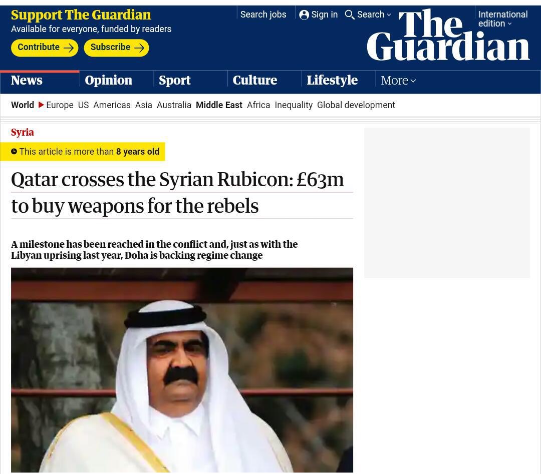 موّلت الدوحة منذ اليوم الأول عدد من المواطنين السوريين بـ 50 دولار يوميًا لتشجيعهم على التظاهرات قبل أن يتطور الأمر لتمويل كامل لجبهة النصر الإرهابية بلغت 3 مليارات دولار في عام واحد بحسب بعض التقديرات!