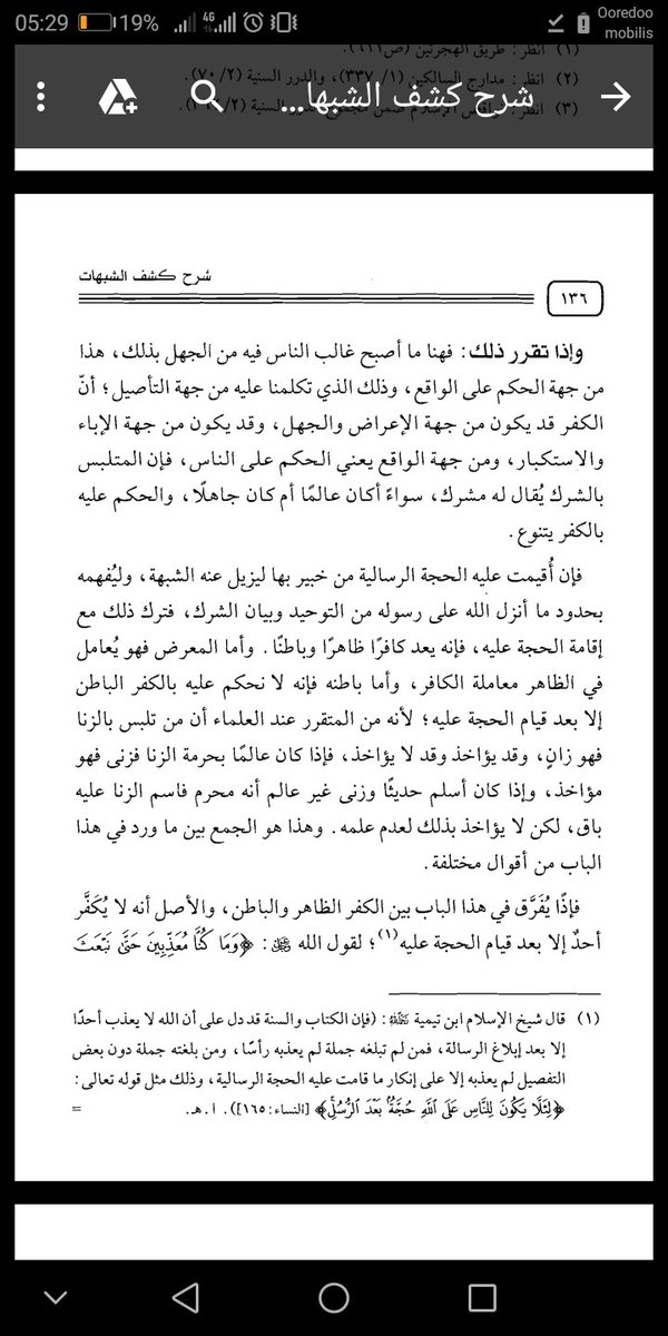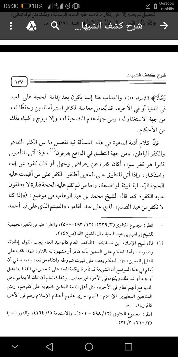 فائدة: يُفهم مما سبق من كلام بعض أئمتنا وعلمائنا في مسألة:"حكم المتلبس بالشرك قبل قيام الحجة عليه"،أن إقامة الحجة شرط في تكفيره الكفر الباطن والظاهر الذي يترتب عليه عذاب الدنيا(القتل)وعذاب الآخرة(الخلود في النار)،وليست شرطا في استحقاقه اسم المشرك وأحكامه الدنيوية التي دون القتل=