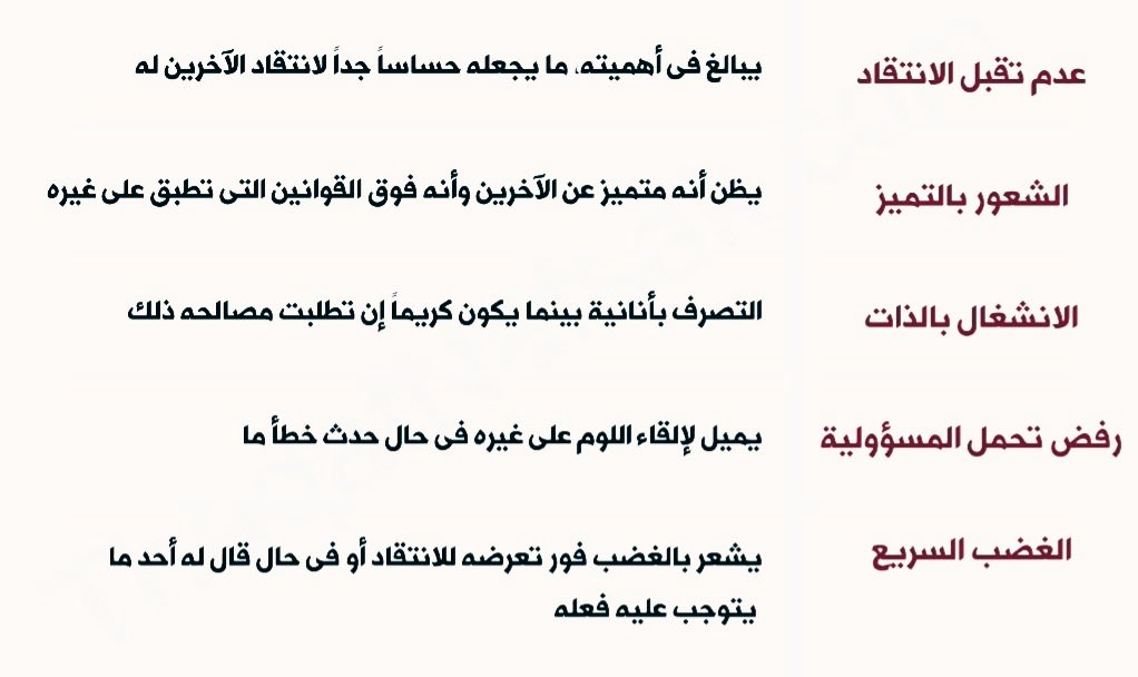 #افهمني_ ربما بعض النرجسية ومخالطة بعض المصطلحات لها تودي لسوء لفهم ولكن الحقيقة توجد في قائمة الاضطرابات الشخصية .