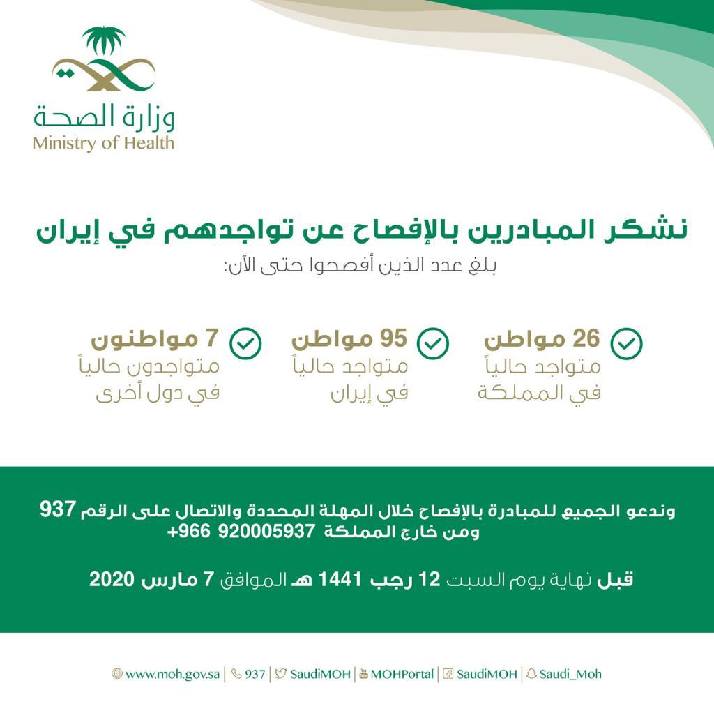 ومهلة 48 ساعة لمن زاروا #إيران في الاسابيع الماضيه و لمن هم في إيران أن يعودوا فورًا وتُزال لعقوبات المنصوصة عليهم نظاميًا.