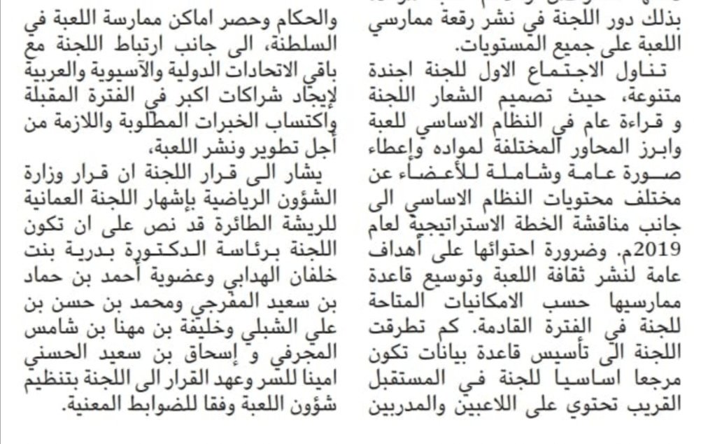 ** إعتماد قرار تشكيل اللجنة العمانية للريشة الطائرة، يوم الأحد: 2019/1/27م.