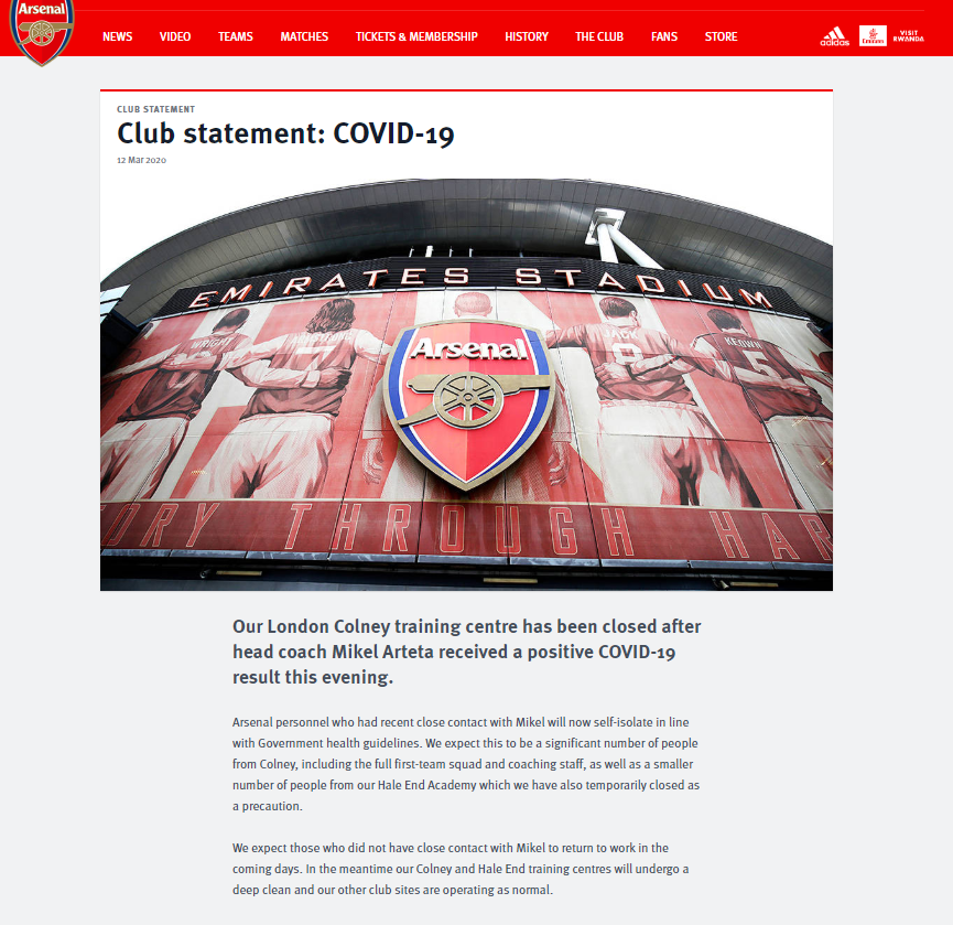 للتوضيح، لاعبو أرسنال سيبقون في منازلهم حتى اكتمال مدة الـ 14 يوما منذ مقابلتهم مع مالك أوليمبياكوس، وليس لمدة 14 يوما بداية من اليوم.