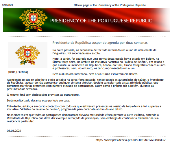 ** المتحدث الرسمي باسم الرئاسة التركية يعلن تعليق المدارس لمدة أسبوع ثم استئنافها عبر الانترنت. تعليق الجامعات لمدة 3 أسابيع وإقامة كل المسابقات الرياضية التركية دون جمهور حتى نهاية أبريل.