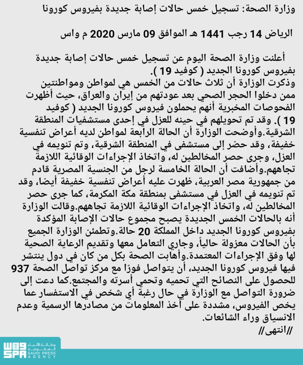 🚨🚨🚨 وزارة الصحة السعودية ترصد 4 حالات جديدة مصابة بالفيروس.